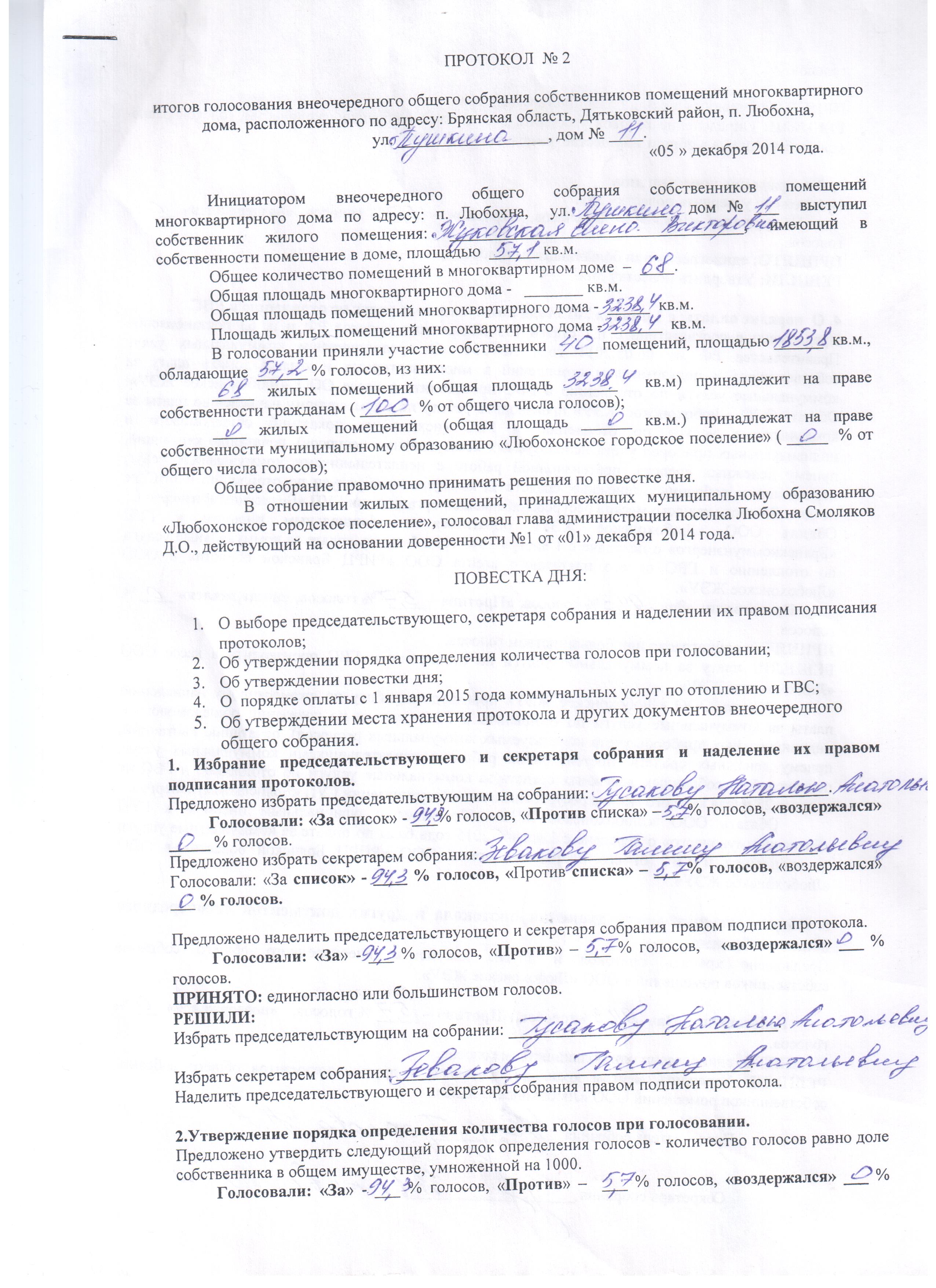 • Информация о проведенных общих собрания собственников МКД в 2014 году